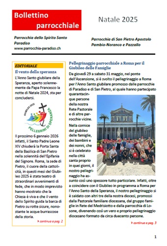 Il bollettino riporta delle riflessioni e dei commenti su temi di attualità di carattere pastorale e dà un resoconto delle principali attività svolte nella nostra comunità.